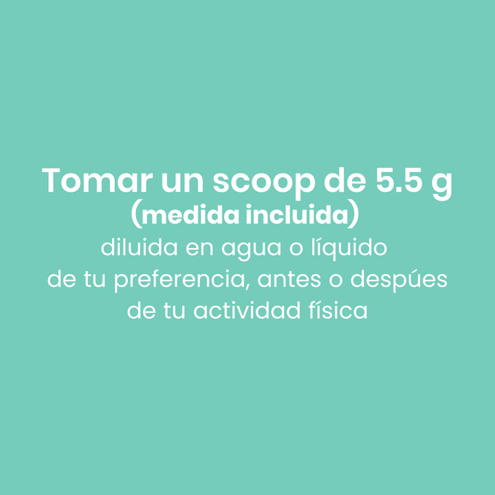 Modo de uso: disolver 5.5 g rebasado del bote (scoop incluido) en tu bebida favorita, preferentemente después de entrenar o hacer ejercicio.