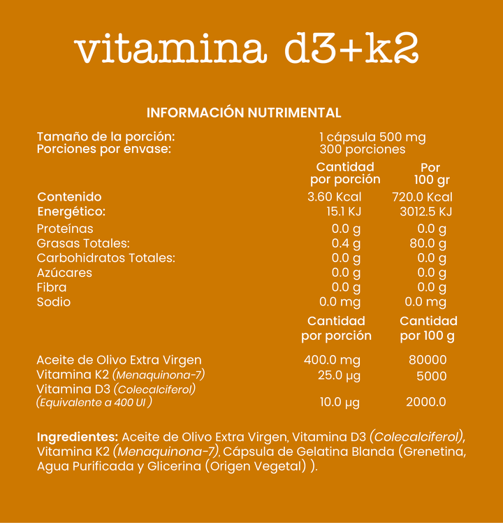 La Vitamina D3 juega un papel clave en la absorción de calcio en el intestino, asegurando que el cuerpo pueda aprovechar al máximo este mineral fundamental para la fortaleza ósea.